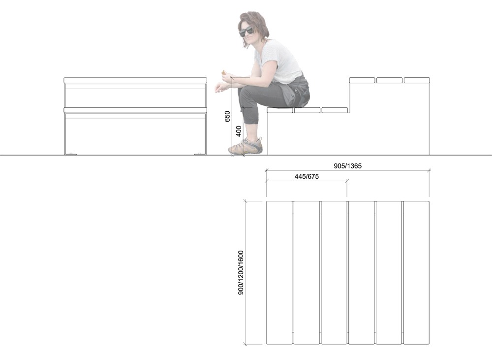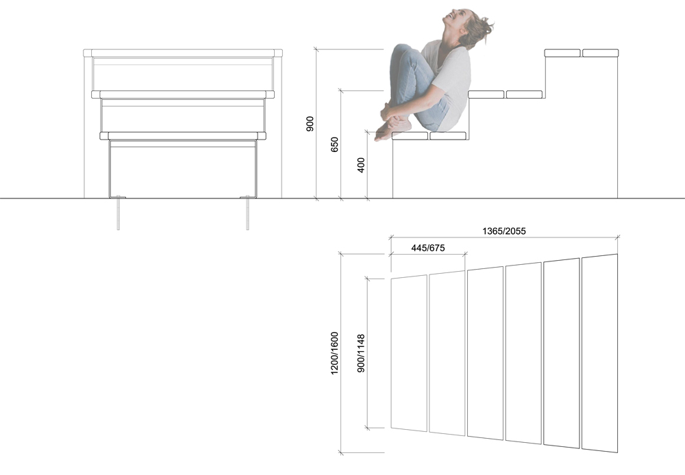 - Dimensions L 900/1600 mm l 1365/2055 mm H 900 mm