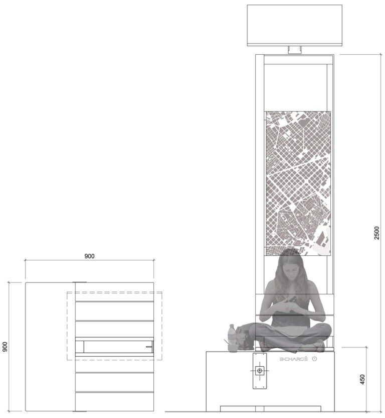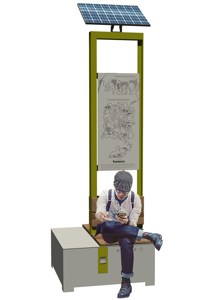 The SOLAR B-CHARGE POUF is a small bench and independent USB charge station, robust and elegant. With display support for information panels.