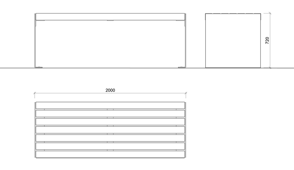 - Dimensions L 2000 mm l 738 mm H 720 mm
