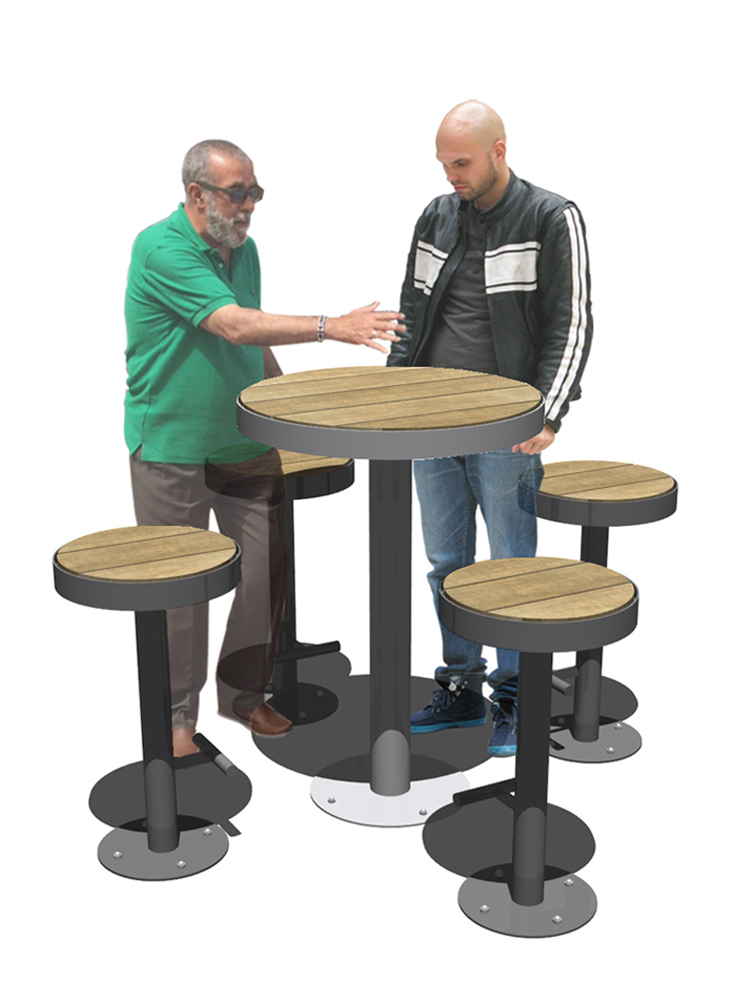 - Tabourets: Ø400mm H720mm / Table: Ø700mm H1000mm