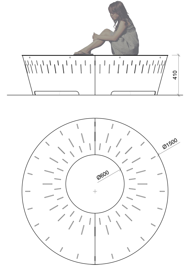 - Dimensions ∅ ext 1500 mm ∅ int 600 mm H 410 mm