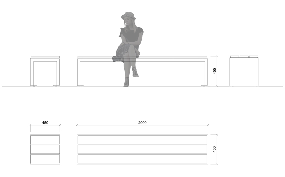- Dimensiones L 2000 mm l 450 mm H 450 mm