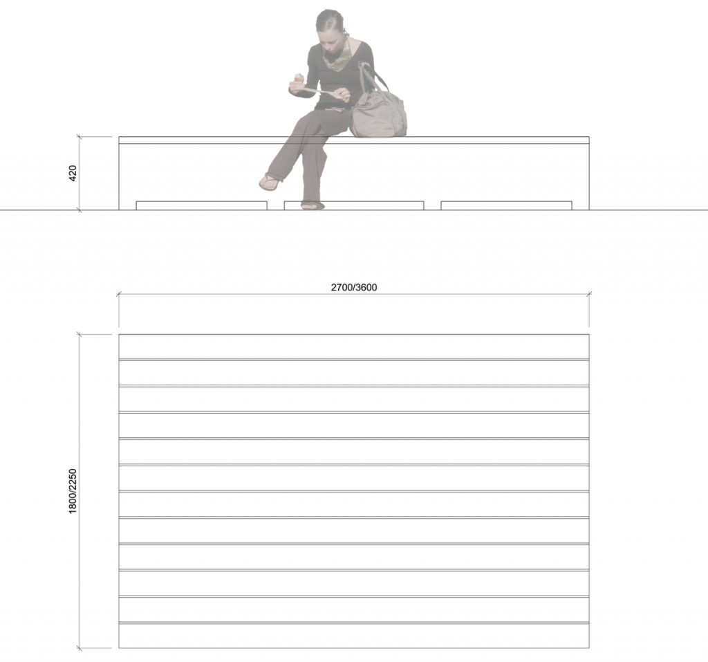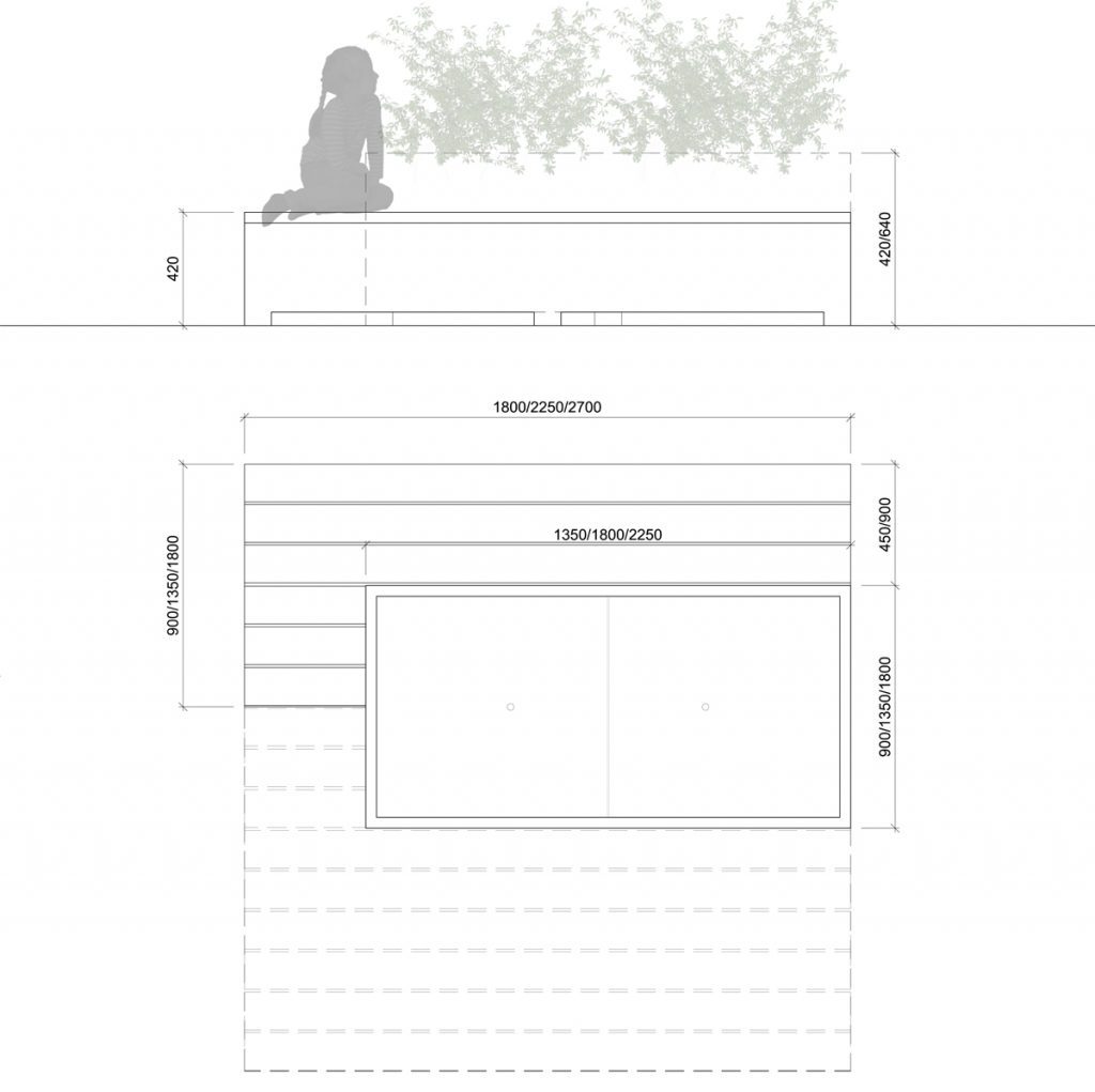 1800mm x 2250mm x H420mm - Medida Jardineras: